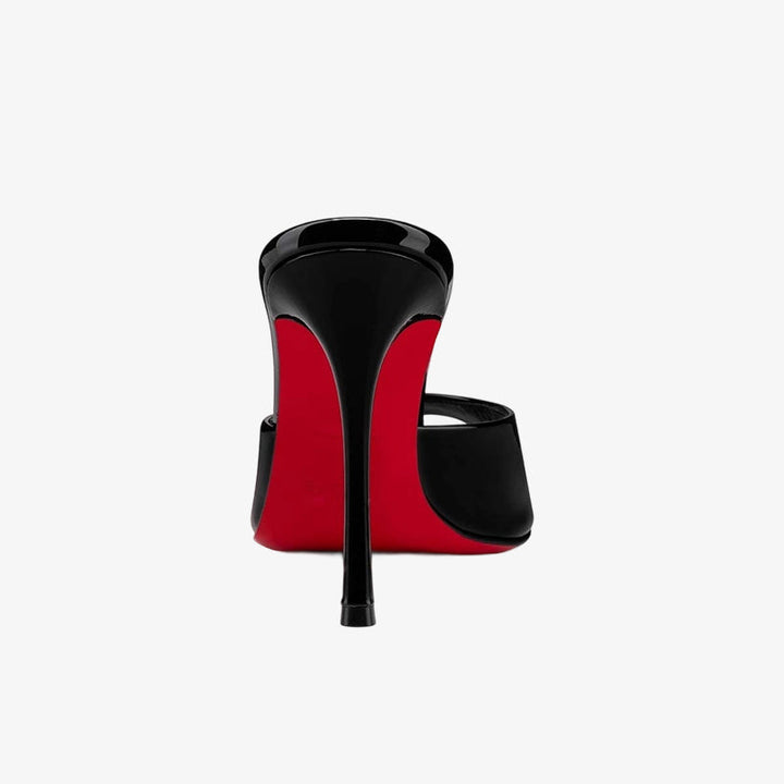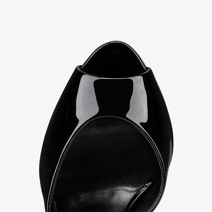 Black Patent Leather Open-Toe Mules