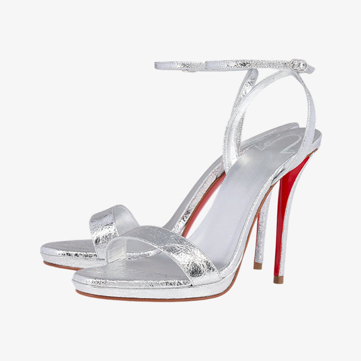 Silver Leather Stiletto Sandal