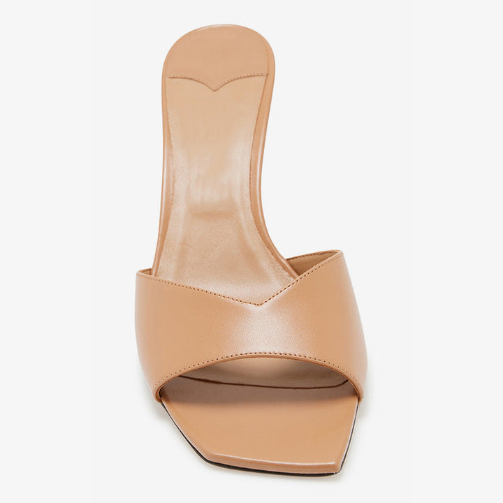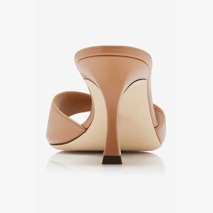 Brown Tapered-Heel Calf Leather Mules