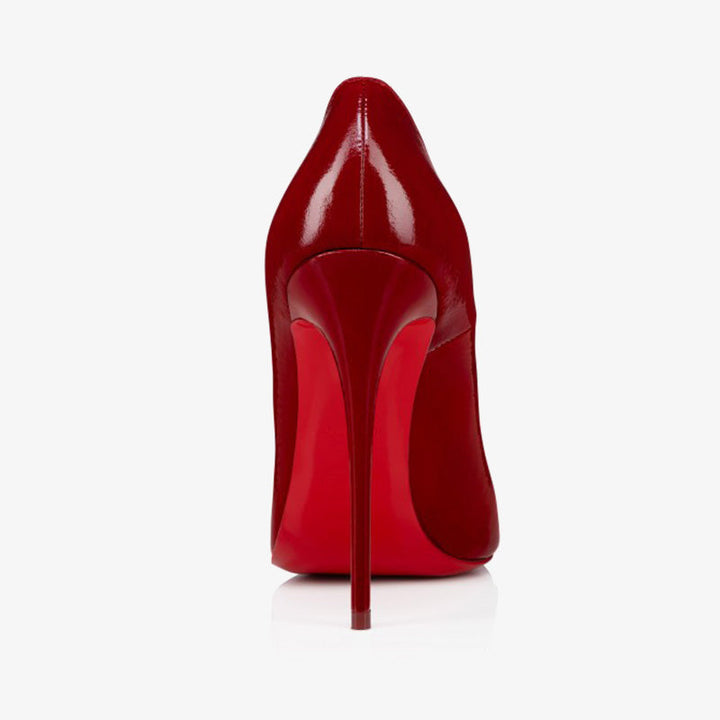 This striking pump is defined by its audacious vamp that elegantly reveals the foot. Crafted entirely from red patent calf leather, it showcases tapered urban lines and a sharply pointed toe. Set on a bold 120 mm architectural heel, the sculpted design adds a modern edge. The supple nature of the patent leather ensures comfort, while natural variations in the wrinkled finish make each pair unique.Color: red