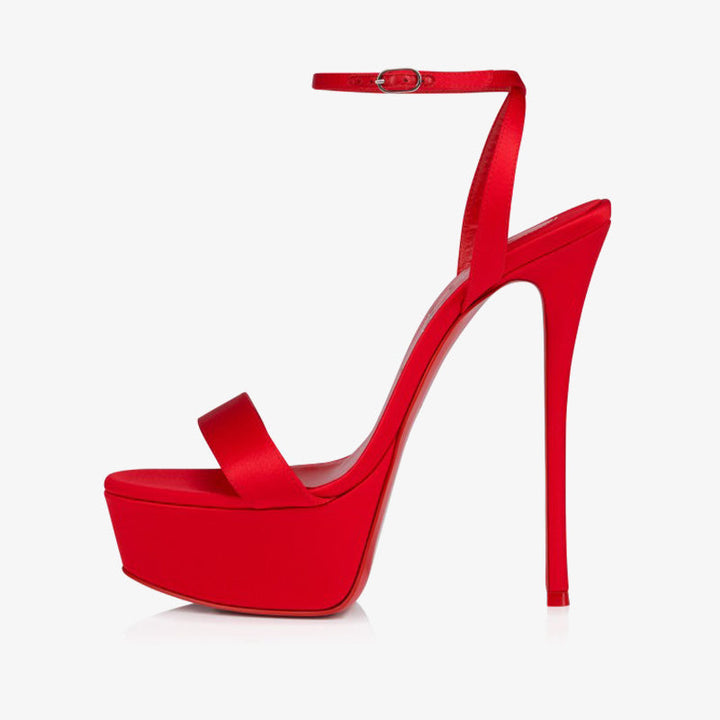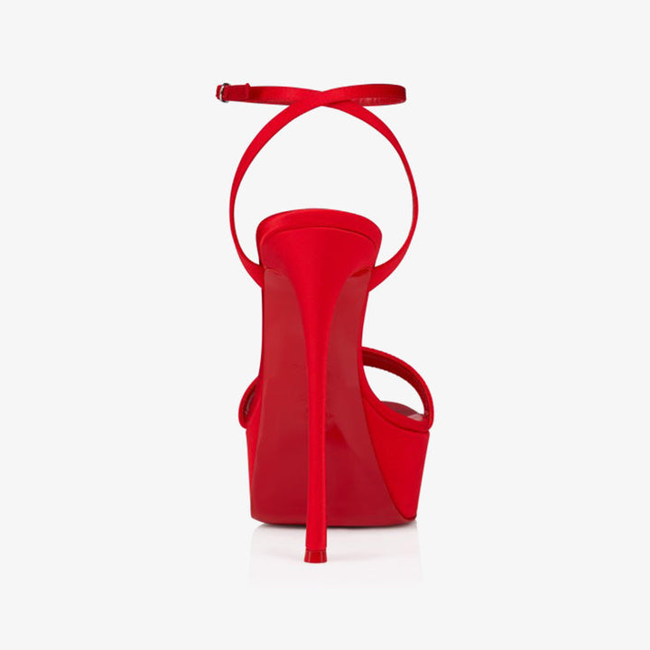 This sophisticated design showcases expert craftsmanship and timeless style. Crafted in red crepe satin, the slender straps delicately frame the foot, while a dainty ankle strap and clasp offer secure elegance. Set on a sculptural high heel, this silhouette brings height and confidence to any evening ensemble. The vibrant red shade enhances its dramatic flair, and the approximately 140 mm heel adds bold sophistication for special occasions.