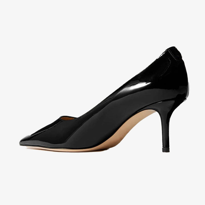 Effortlessly chic and endlessly versatile, these pumps are crafted from glossy patent leather for a polished finish. Featuring a sleek pointed toe and deep-cut vamp, they create an elegant, elongated silhouette. Perfect for pairing with both tailored ensembles and flowing dresses.The heel height of this pair is 60mm.