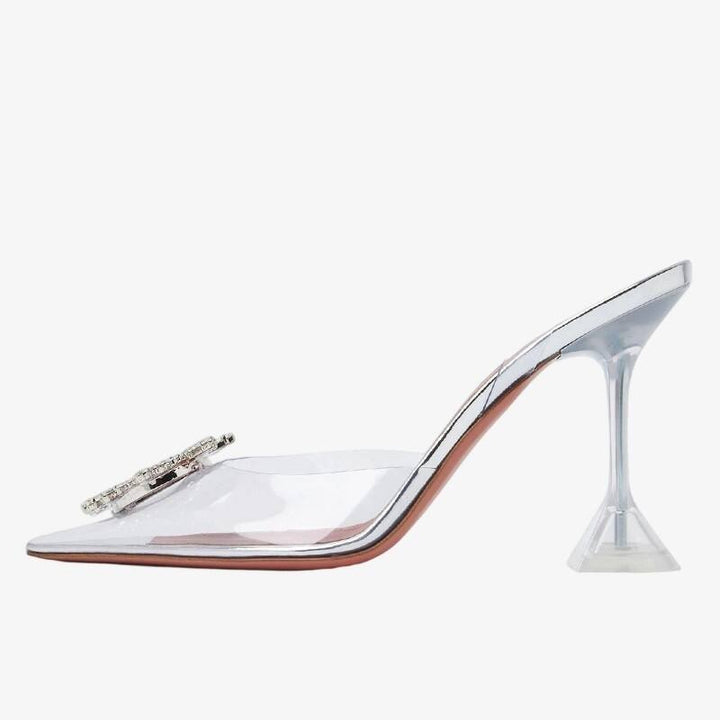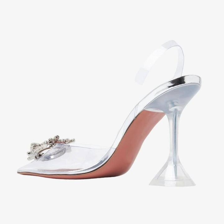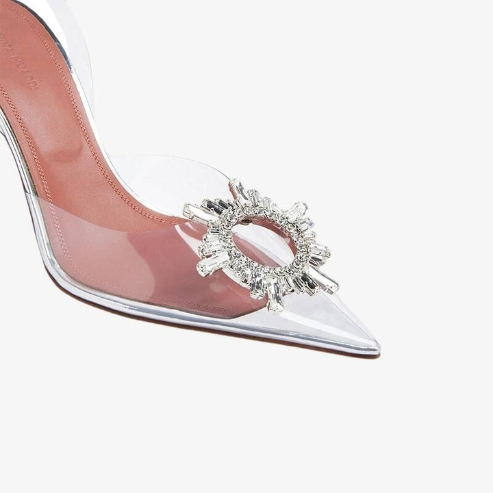These stylish slingback pumps feature a smooth PVC upper and an elegant pointed toe for a modern look. The 95mm heel provides subtle lift, while sparkling crystal details add to the allure.