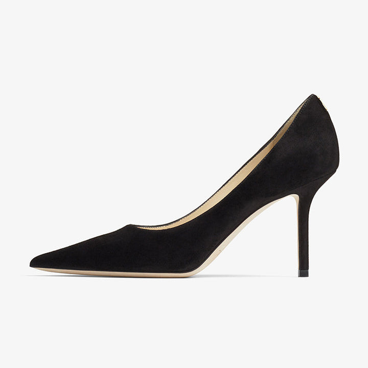 A timeless expression of sophistication, these suede heels are designed with a sleek pointed toe and a refined, slim heel. Cut higher on the foot for an elegant silhouette, they offer both style and comfort with a supple leather lining and sole, making them a perfect choice for any occasion.The heel height of this pair is 80mm.