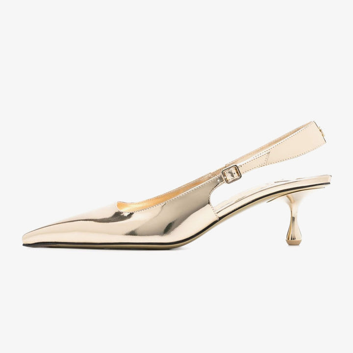 Gold-Tone Leather Slingback Pumps