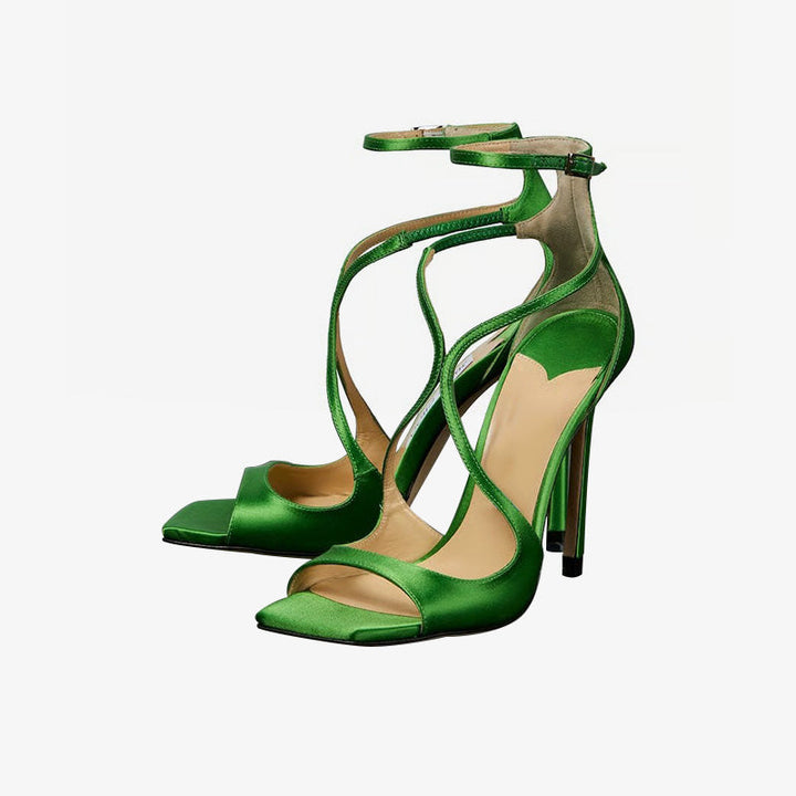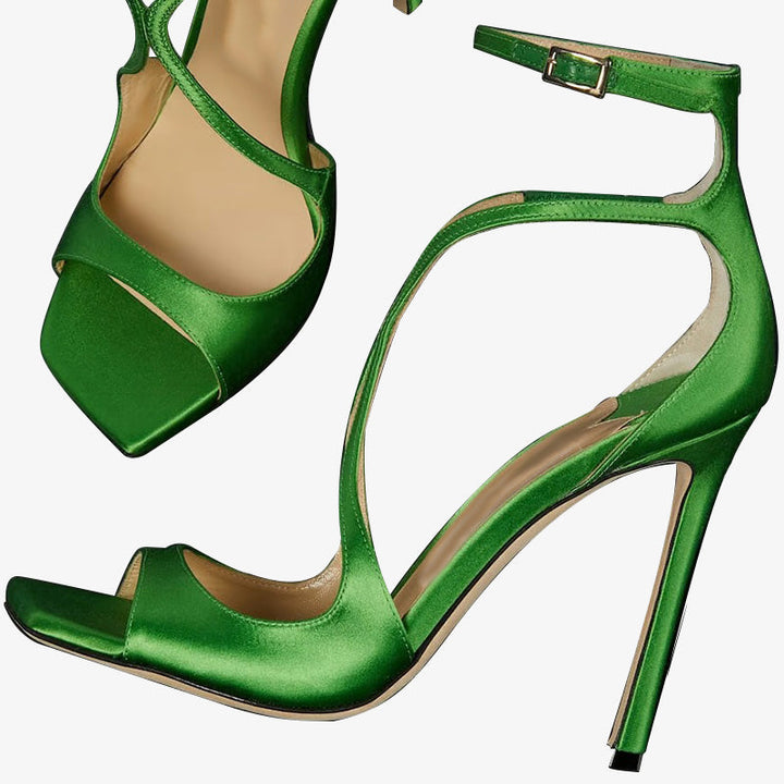 Green Satin Strappy Sandals