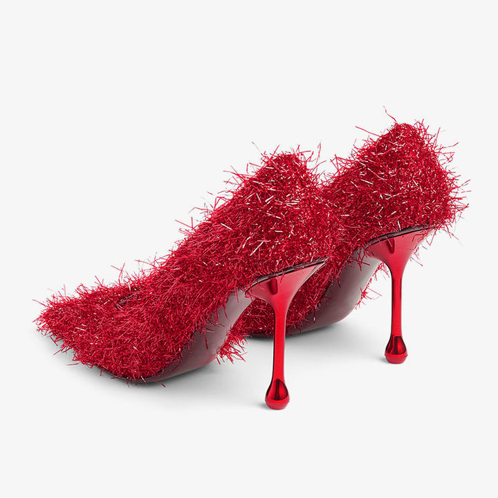 Red Tinsel Drop-Heel Evening Pumps