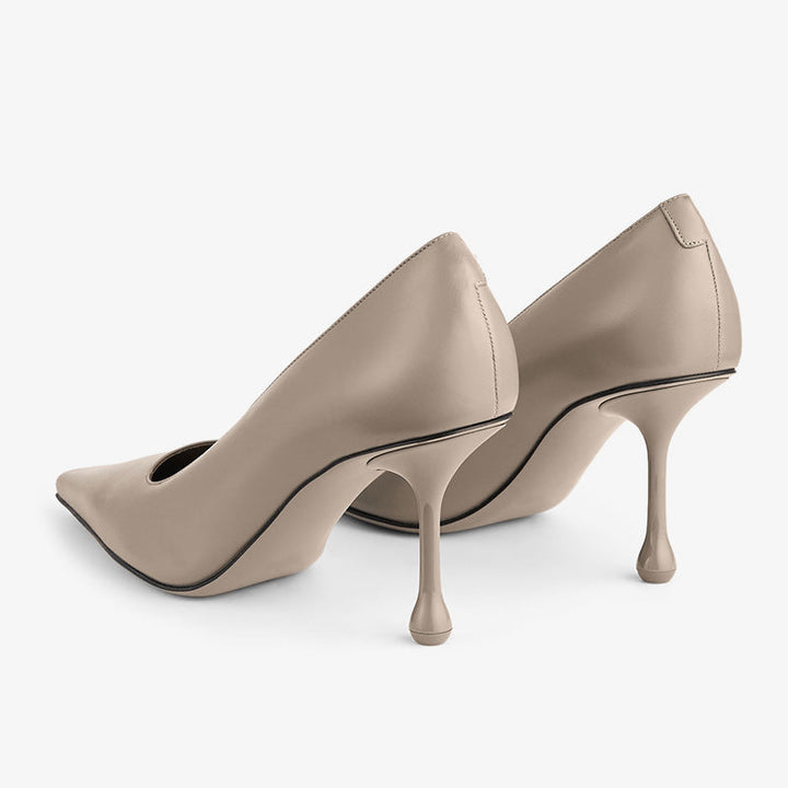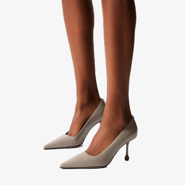 These modern pumps elevate the classic design with a contemporary drop heel and a square-cut vamp. Crafted from smooth calf leather and featuring a pointed toe, they offer an understated yet glamorous addition to your wardrobe. Perfect for adding a touch of sophistication to any look.The heel height of this pair is 100mm.