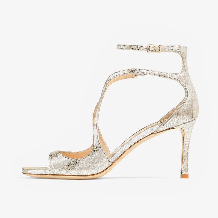 Make a bold statement with these yellow glitter leather sandals, designed with elegant curved straps that wrap gracefully around the foot. Featuring a modern square toe, slim 75mm heel, and adjustable ankle strap, this dazzling pair is perfect for standout occasions.Color:yellow
