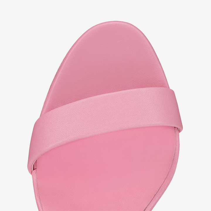 The pink sandal is designed to turn heads, with its smooth curve of the 80 mm heel tapering into the vibrant red sole for a striking contrast. Crafted from soft calf leather, the sleek arch, almond-shaped toe, and delicate ankle strap elevate this model, making it a perfect blend of simplicity and sophistication.